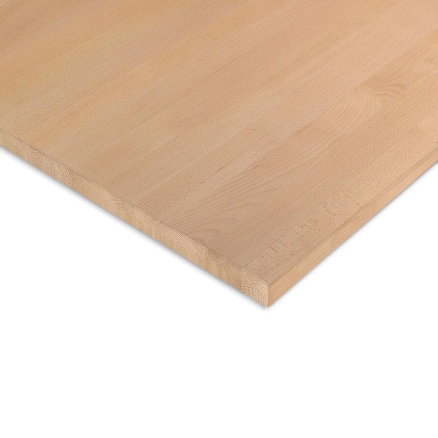 Arbeitsplatte / Leimholzplatte Buche - 2,7 cm (27 mm) stark - Massivholzplatte 1-lagig - A-Qualität Buchenholz (A/B) - Hochwertiges Buche-Leimholz - künstlich getrocknet (HF 8-12%). Eine preisgünstige buchen Arbeitsplatte, 20 mm stark, die von unseren Holzarbeitern mit viel Sorgfalt gefertigt wird und in verschiedenen Standardgrößen verfügbar ist. Unser hochwertiges Buchenholz - mit einer Sichtseite in A-Qualität - enthält wenige kleine Äste sowie eventuell kleine Risse.