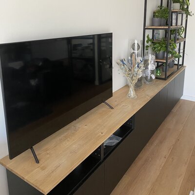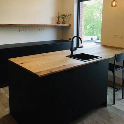 Rustikales Eichenholz - mit einer B-Qualität Sichtseite - enthält Äste und Risse. Dies sorgt für ein natürliches und lebendiges Aussehen. Rustikales (B/C) Eichenholz ist bekannt für seine warme und stimmungsvolle Ausstrahlung. Diese Eichenplatte wird mit durchgehenden Lamellen - mit einer Breite von 9-12 cm, extra breit für einen luxuriösen Akzent - in der Länge geliefert. Eine Eichen-Arbeitsplatte wird standardmäßig unbehandelt, geschliffen und mit harten (scharfen) Kanten geliefert.