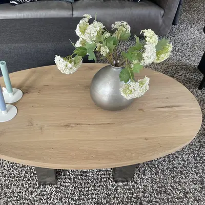 Auf Basis der von Ihnen gewählten Maße zeigen wir Ihnen eine wunderschöne Auswahl passender Tischgestelle für einen einzigartigen Sofa-, Couch- oder Wohnzimmertisch aus Eiche. Ein ovaler Tisch wird in der Breite an den Enden schmaler. Deshalb empfehlen wir ein mittig montiertes Tischgestell.