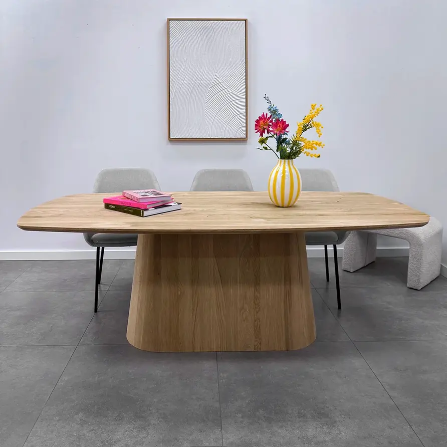 Ein wunderschönes Konischer Säule Untergestelle aus A-Qualität Eichenholz, ideal für einen besonderen (Eichen)-Esstisch. Ein zentrales Säulengestell wird oft auch als Säulenfuß, Tischfuß oder Mittelfuß bezeichnet. Die stilvolle konischer Säulenform in Kombination mit A-Qualität (A/B) Eichenholz verleiht dem Tischbein eine stimmungsvolle Ausstrahlung mit einem klassischen Akzent. Dieses Säulen-Esstischgestell wird von unseren Holzhandwerkern mit viel Sorgfalt und Liebe handgefertigt. Fehlerfreies Eichenholz - mit einer A-Qualität Sichtseite - enthält praktisch keine Äste und Risse. Dies sorgt für ein stilvolles und elegantes Aussehen.