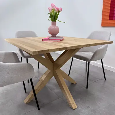 Auf Basis der von Ihnen gewählten Maße zeigen wir Ihnen eine wunderschöne Auswahl passender Tischgestelle für einen einzigartigen, quadratischen Esstisch aus Eiche.