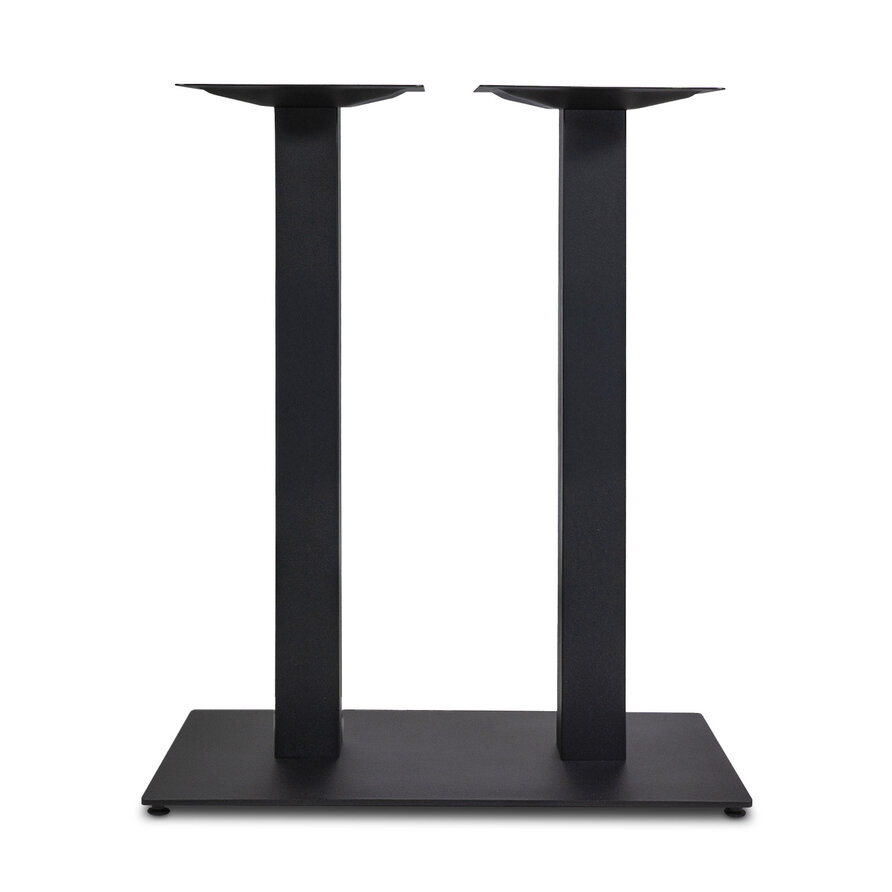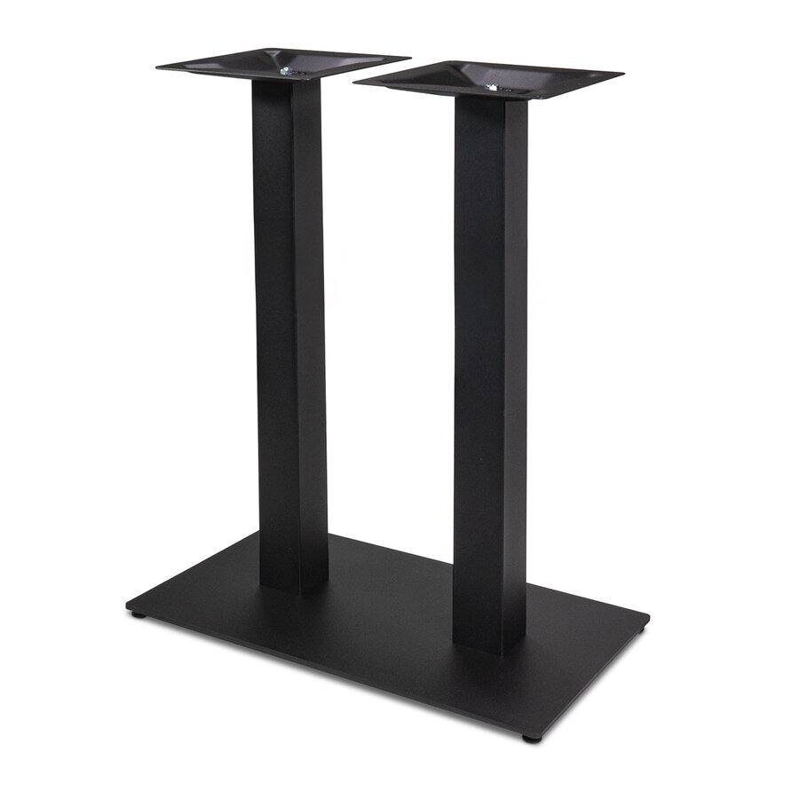 Steh-/Bar-Bistrotischgestell aus Metall - schwarz - 8x8 cm Profil - 3-teilig - Montageplatte (oben): 30x66 cm - Abmessungen (Bodenplatte): 40x70 cm - Höhe: 108 cm - aus schwarz beschichtetem Gusseisen (Feinstruktur) - Bistro-/Gastronomie-Hochtischgestell, geeignet für Gastro-Tische von 100x60 cm bis 180x90 cm.