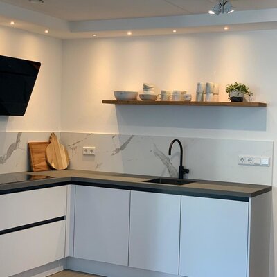 Leimholzplatte Eiche - nach Maß - 3 cm (30 mm) stark - Massivholzplatte (1-lagig) - rustikalem Eichenholz (B/C) - Hochwertiges Eichen-Leimholz - künstlich getrocknet (HF 8-12%). Eine schöne Eichen-Leimholzplatte, 30 mm stark, die von unseren Holzarbeitern mit viel Sorgfalt und Liebe maßgefertigt wird. Rustikales Eichenholz - mit einer B-Qualität Sichtseite - enthält Äste und Risse. Dies sorgt für ein natürliches und lebendiges Aussehen.