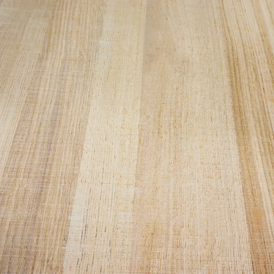 Leimholzplatte Eiche - nach Maß - 4 cm (40 mm) stark - mit Sägerau-Optik - Massivholzplatte 1-lagig - A-Qualität Eichenholz (A/B) - Hochwertiges Eichen-Leimholz - künstlich getrocknet (HF 8-12%). Eine schöne Leimholzplatte Eiche, 40 mm stark, die von unseren Holzarbeitern mit viel Sorgfalt und Liebe maßgefertigt wird. Eine sägeraue Leimholzplatte aus Eiche wird durch eine Bandsäge geführt, wodurch charakteristische, rohe Kreuzlinien auf der Oberfläche entstehen. Diese ähneln stark den typischen Säge- und Bearbeitungsspuren von sägerauem Holz. Fehlerfreies Eichenholz - mit einer A-Qualität Sichtseite - enthält praktisch keine Äste und Risse. Dies sorgt für ein stilvolles und elegantes Aussehen.
