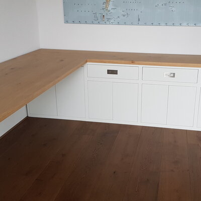 Leimholzplatte Eiche - nach Maß - 4 cm (40 mm) stark - Massivholzplatte 2-lagig (2x2 cm) - rustikalem Eichenholz (B/C) - Hochwertiges Eichen-Leimholz - künstlich getrocknet (HF 8-12%). Eine zweischichtige Eichen-Leimholzplatte, 40 mm stark (2x20 mm), die von unseren Holzarbeitern mit viel Sorgfalt und Liebe maßgefertigt wird. Eine zweischichtige Eichenplatte besteht aus zwei gleich starken, massiven Lagen und ist absolut massiv. Rustikales Eichenholz - mit einer B-Qualität Sichtseite - enthält Äste und Risse. Dies sorgt für ein natürliches und lebendiges Aussehen.