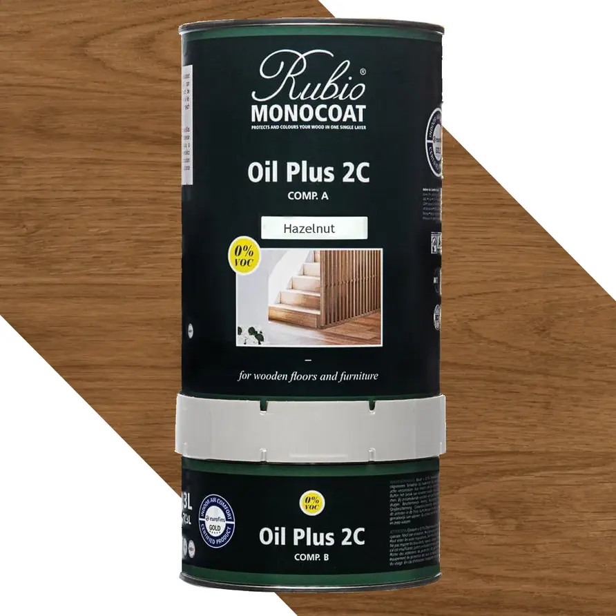 Rubio Monocoat Öl ist ist im Grunde ein 1-Komponenten-Holzöl. Bei Holzprodukten, die aktiv genutzt werden, einer hohen Beanspruchung ausgesetzt sind und möglicherweise mit Wasser oder Feuchtigkeit in Kontakt kommen - wie beispielsweise eine Eichen-Tischplatte - wird in der Regel die Verwendung eines 2-Komponenten-Produkts (Monocoat-Öl A + B-Komponente) empfohlen. Dieses bietet den Vorteil, besonders robust und widerstandsfähig zu sein. Darüber hinaus überzeugt ein 2-Komponenten-Öl durch seine schnelle Trocknungs- und Aushärtezeit, was die Verarbeitung zusätzlich erleichtert.