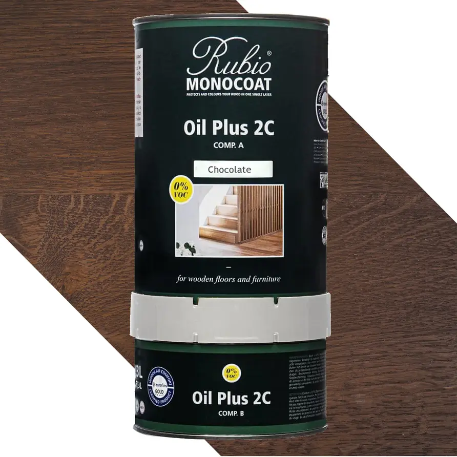 Rubio Monocoat-Öl (A + B) - in verschiedenen Farben erhältlich - 1,3 Liter (ca 52 m2) - 2 Komponenten (2+) - für den Innenbereich geeignet. Möchten Sie Ihre Eichentischplatte mit einem hochwertigen 2-Komponenten-Öl in einem speziellen Farbton versehen? Dann ist das Rubio Monocoat Öl +2C (2 Komponenten, A+B) ein ideales Produkt. Dies ist ein hochwertiges 2-Komponenten-Öl (A+B), das sich ideal zur Behandlung von unbehandeltem (Eichen)Holz eignet.