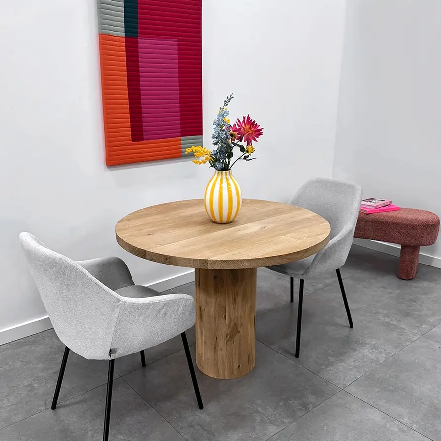 Ein wunderschönes Eichen Säulenfuß aus rustikaler Eichenholz, ideal für einen stimmungsvollen runden oder quadratischen (Eichen)-Esstisch. Ein zentrales Säulenfuß wird oft auch als Pfeilerfuß, Säulengestell oder Mittelfuß bezeichnet. Die stilvolle Pfeiler- oder Säulenform in Kombination mit rustikalem Eichenholz verleiht dem Tischbein eine stimmungsvolle Ausstrahlung mit einem klassischen Akzent. Dieses Säulen-Esstischgestell wird von unseren Holzhandwerkern mit viel Sorgfalt und Liebe handgefertigt. Rustikales Eichenholz - mit einer B-Qualität Sichtseite - enthält Äste und Risse. Dies sorgt für ein natürliches und lebendiges Aussehen.