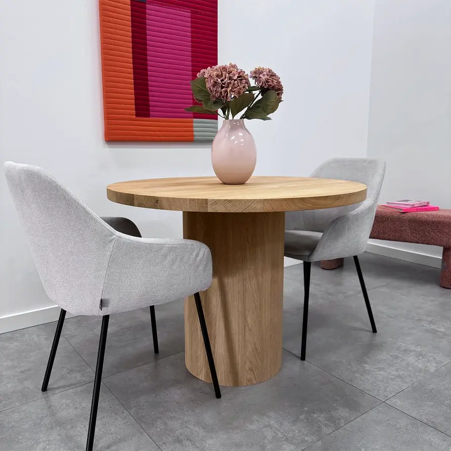 Ein wunderschönes Eichen Säulenfuß aus A-Qualität Eichenholz, ideal für einen stimmungsvollen runden oder quadratischen (Eichen)-Esstisch. Ein zentrales Säulenfuß wird oft auch als Pfeilerfuß, Säulengestell oder Mittelfuß bezeichnet. Die stilvolle Pfeiler- oder Säulenform in Kombination mit A-Qualität (A/B) Eichenholz verleiht dem Tischbein eine luxuriöse Ausstrahlung mit einem klassischen Akzent. Dieses Säulen-Esstischgestell wird von unseren Holzhandwerkern mit viel Sorgfalt und Liebe handgefertigt. Fehlerfreies Eichenholz - mit einer A-Qualität Sichtseite - enthält praktisch keine Äste und Risse. Dies sorgt für ein stilvolles und elegantes Aussehen.