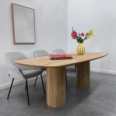 Ein wunderschönes Eichen Säulenfuß Set aus A-Qualität Eichenholz, ideal für einen stimmungsvollen (Eichen)-Esstisch. Die stilvolle Pfeiler- oder Säulenform in Kombination mit A-Qualität (A/B) Eichenholz verleiht dem Tischbein eine stimmungsvolle Ausstrahlung mit einem klassischen Akzent. Dieses Säulen-Esstischgestell wird von unseren Holzhandwerkern mit viel Sorgfalt und Liebe handgefertigt. Fehlerfreies Eichenholz - mit einer A-Qualität Sichtseite - enthält praktisch keine Äste und Risse. Dies sorgt für ein stilvolles und elegantes Aussehen.