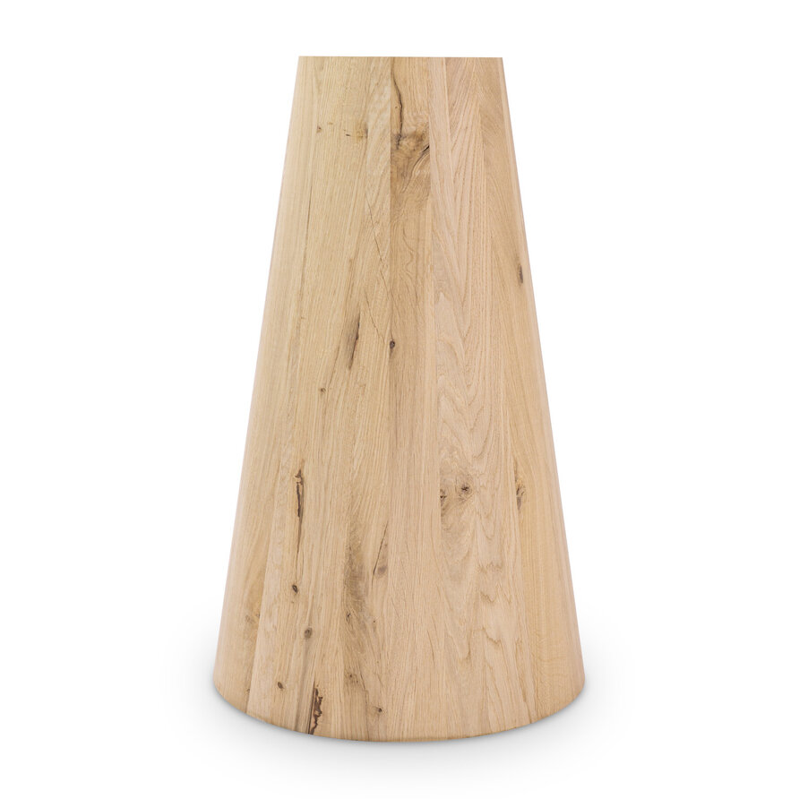 Ein wunderschönes Eichen Kegelfuß aus rustikaler Eichenholz, ideal für einen stimmungsvollen runden oder quadratischen (Eichen)-Esstisch. Dieses konischer Tischfuß wird oft auch als Säulenfuß, Konusfuß oder Mittelfuß bezeichnet. Die stilvolle konischer Säulenform in Kombination mit rustikalem Eichenholz verleiht dem Tischbein eine stimmungsvolle Ausstrahlung mit einem klassischen Akzent. Dieses Säulen-Esstischgestell wird von unseren Holzhandwerkern mit viel Sorgfalt und Liebe handgefertigt. Rustikales Eichenholz - mit einer B-Qualität Sichtseite - enthält Äste und Risse. Dies sorgt für ein natürliches und lebendiges Aussehen.