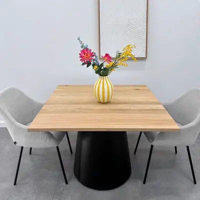 Geeignet für: Dieses Tischuntergestell ist geeignet für runde und quadratische Tischplatten mit einer Größe von mindestens 90x90 bis maximal 140x140 cm. Besonders häufig wird es für Tischplatten mit einer Größe von 100x100 bis 140x140 cm verwendet.