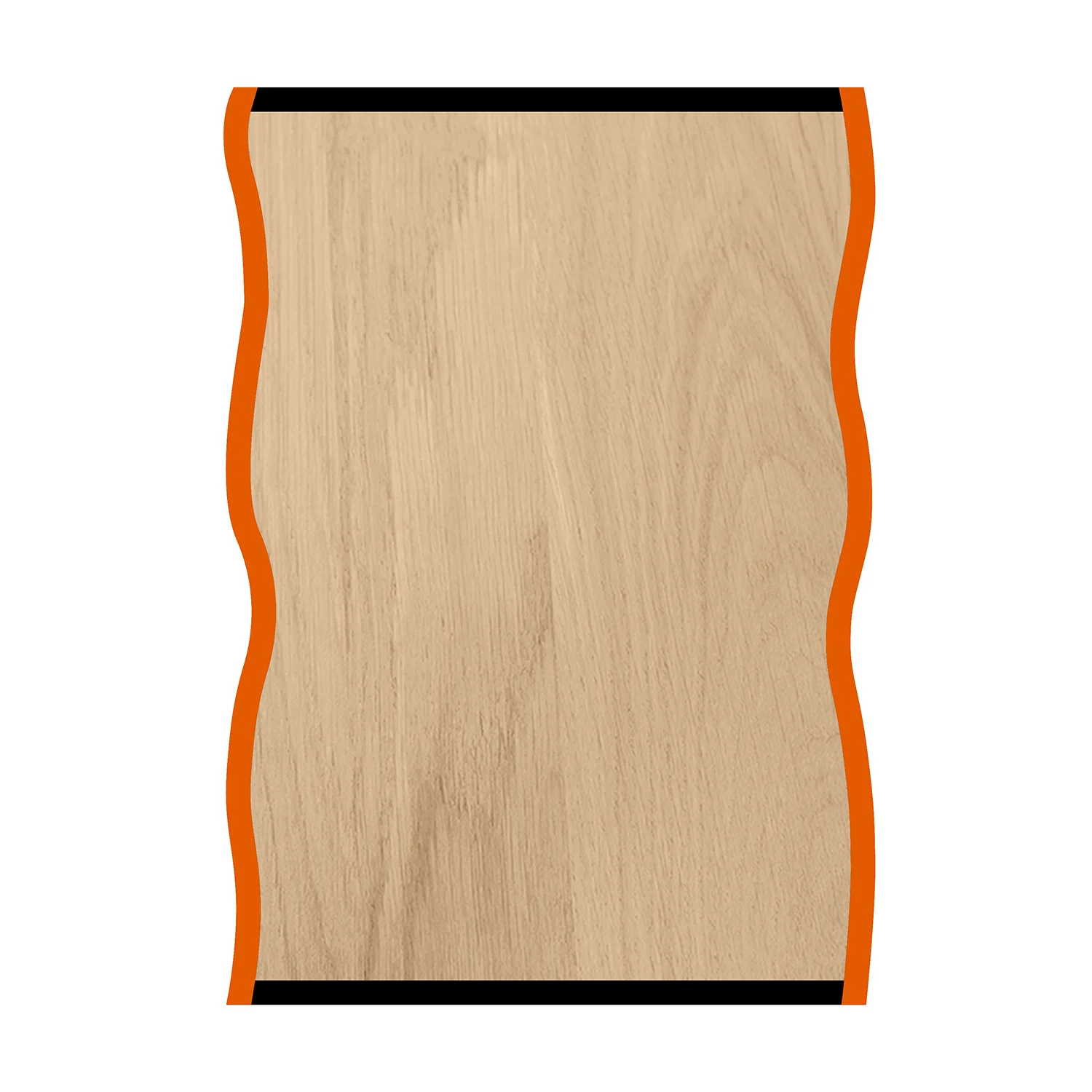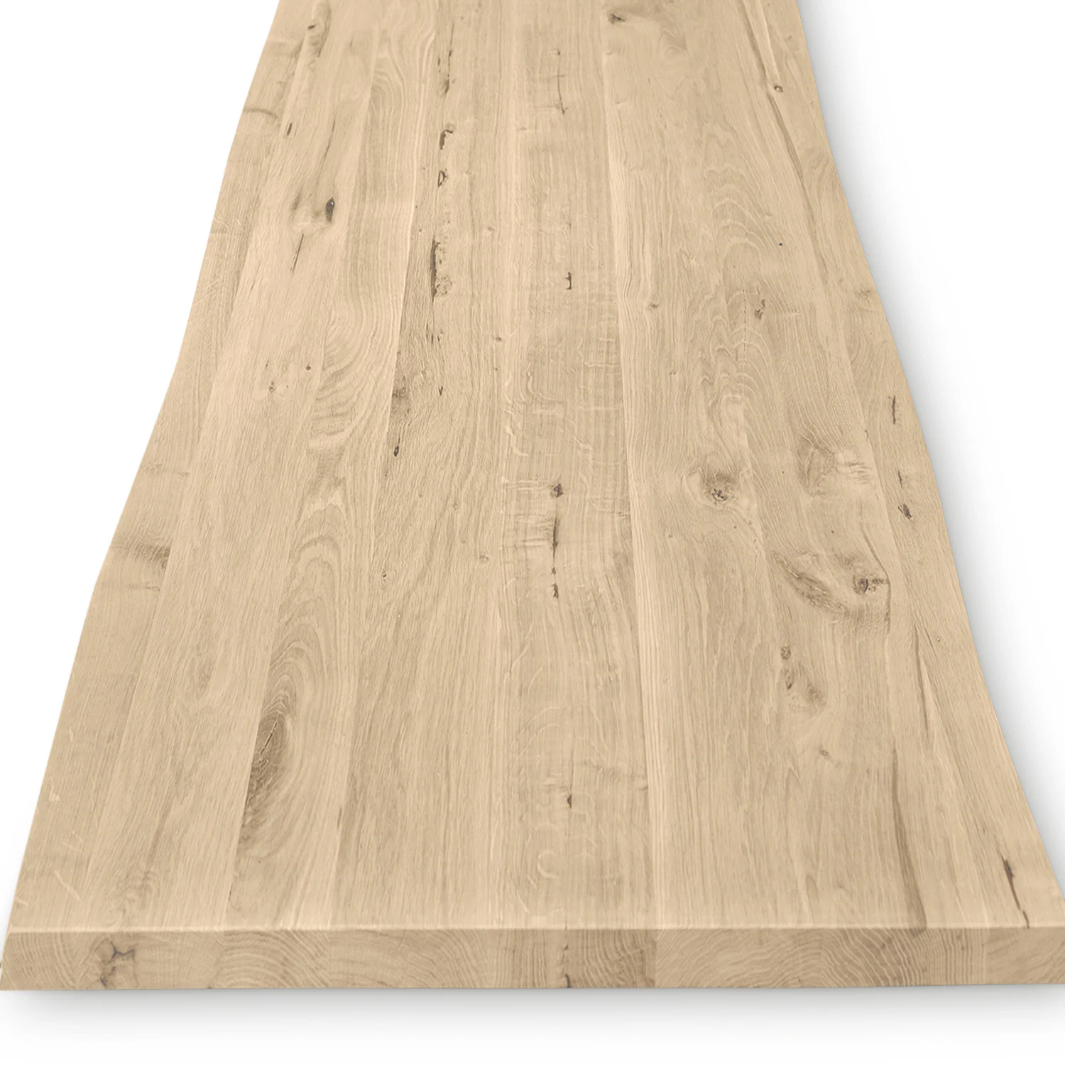Eine Tischplatte wird normalerweise mit geraden Kanten geliefert, die gefast werden, also mit einer 2-mm-Abkantung versehen. Sie können sich jedoch auch für die Kantenbearbeitung "Baumkanten-Optik“ entscheiden. Eine "Baumstamm-Optik" verleiht der Tischplatte einen robusten Akzent – perfekt für einen natürlichen Look. Dabei wird an einer oder beiden Längsseiten einem natürlichen Baumkanten Nachahmung angebracht (d.h. CNC-gefräst). Also keine „echte“ Baumrinde, sondern eine schöne Nachbildung davon. Der Vorteil dieser Baumstamm-Kanten-Optik liegt in der schönen Formgebung, jedoch ohne das auffällige (weiße) Splintholz, das bei einer echten Baumkante so ins Auge fällt. Die kurzen Seiten (Kopfseiten) der Holzplatte sind gerade und werden gefast (2 mm Radius). Berücksichtigen Sie dabei die folgenden Punkte:
