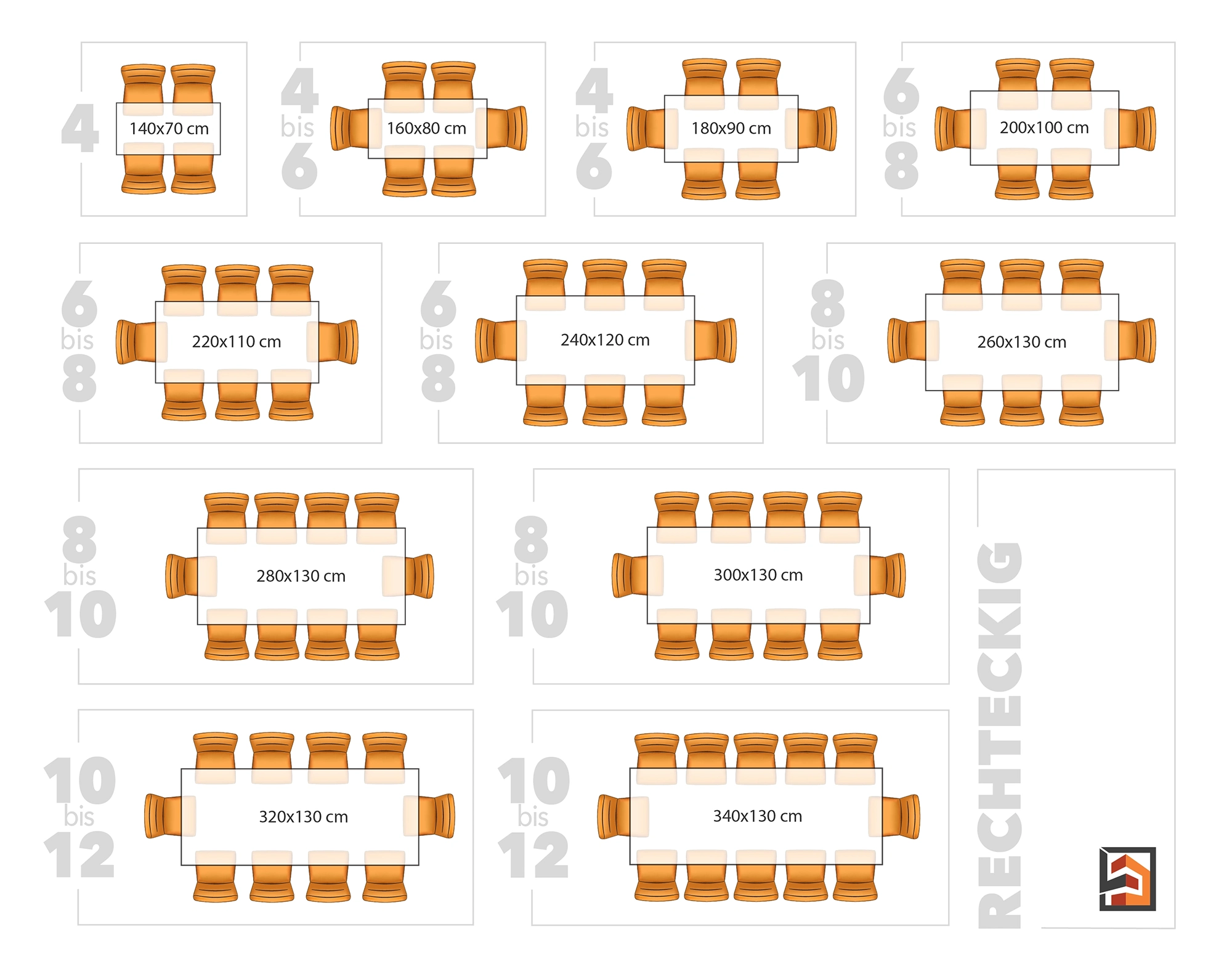 Bei der Wahl eines neuen (Ess-)Tisches ist es wichtig, den verfügbaren Platz für Stühle zu berücksichtigen. Deshalb haben wir für Sie eine praktische Übersicht erstellt.
