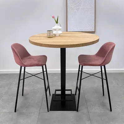 Auf Basis der von Ihnen gewählten Maße zeigen wir Ihnen eine wunderschöne Auswahl passender Gastro-Tischgestelle für einen einzigartigen, runden Hochtisch aus Eiche.