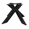 Schwarzes Kreuz-Tischgestell Metall - 5x15 cm Profil, 72 cm hoch - erhältlich in 90x90 und 130x130 cm groß. Ein modernes und elegantes Esstischgestell (zentraler Tischfuß) in doppel-X-Form aus beschichtetem Stahl. Lesen Sie mehr