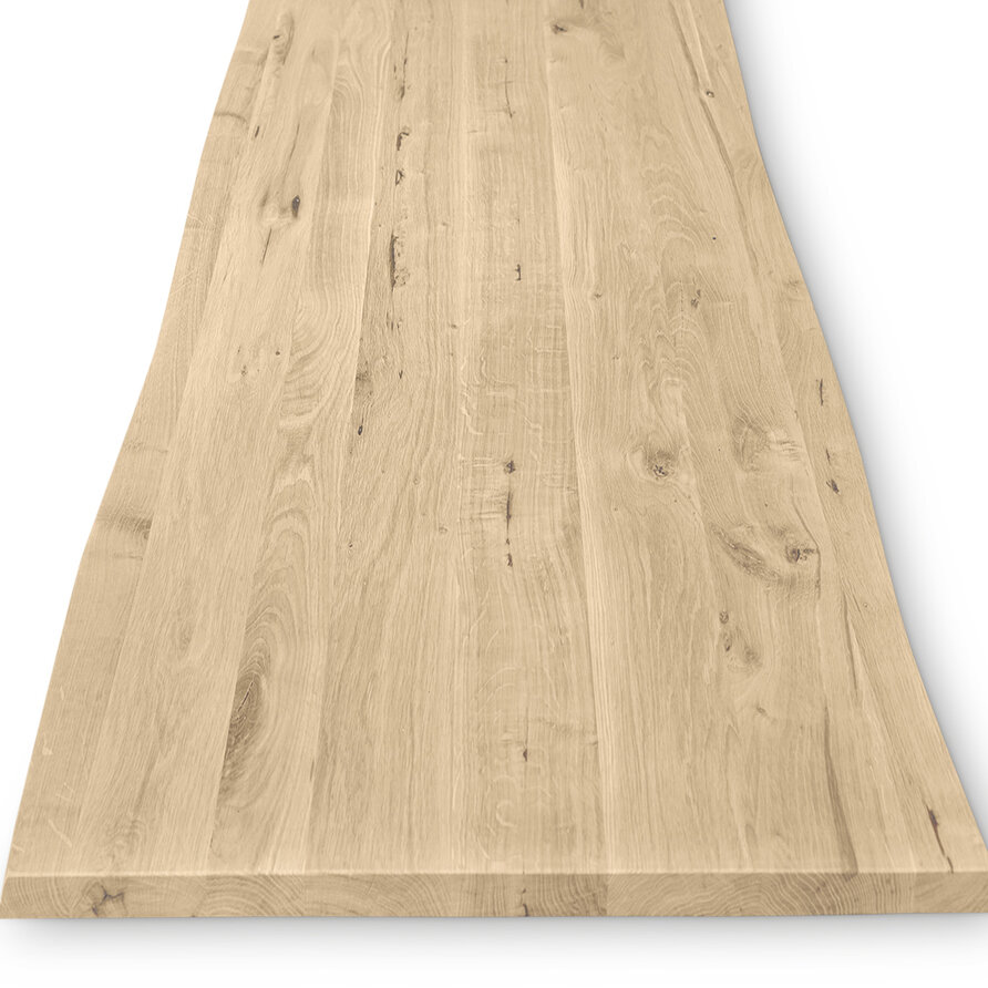 Tischplatte Eiche mit Baumkante-Optik (CNC) massiv - nach Maß - 4 cm (40 mm) dick - Eichenholz rustikal (B/C) - Massivholz, verleimt - HF 8-12%
