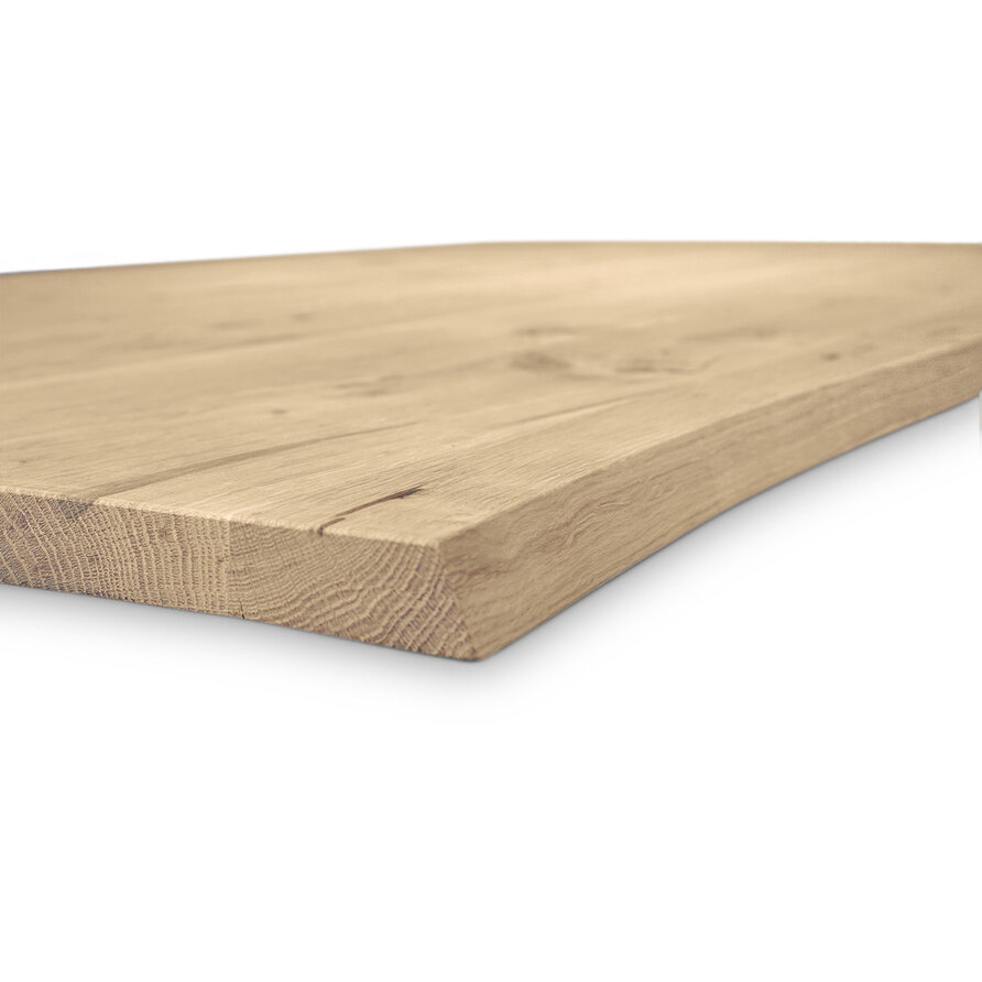 Rustikales (B/C) Eichenholz ist bekannt für seine warme und stimmungsvolle Ausstrahlung. Diese Tischplatte Eiche wird mit durchgehenden Lamellen - mit einer Breite von 4-10 cm, was einer gängigen Lamellenbreite entspricht - in der Länge geliefert. Eine Tischplatte aus Eichenholz wird standardmäßig unbehandelt, geschliffen und mit gefasten Kanten (einer 2 mm Radiusfase) ausgeliefert. Darüber hinaus bieten wir in unserem Online-Konfigurator verschiedene Zusatzoptionen an, um Ihre Tischplatte ganz nach Ihren Wünschen zu bearbeiten und zu behandeln.