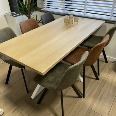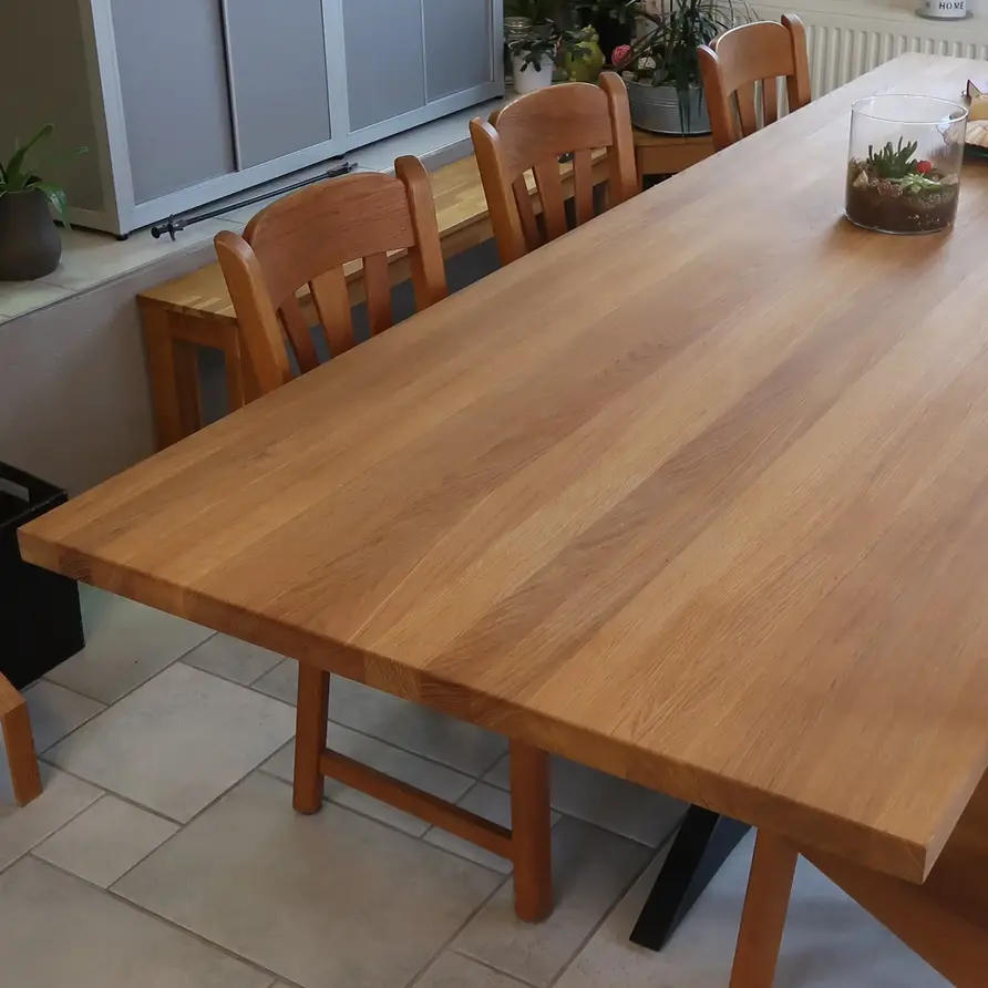 A-Qualität (A/B) Eichenholz ist bekannt für seine stimmungsvolle und luxuriöse Ausstrahlung. Diese Tischplatte Eiche wird mit durchgehenden Lamellen - mit einer Breite von 4-10 cm, was einer gängigen Lamellenbreite entspricht - in der Länge geliefert. Eine Tischplatte aus Eichenholz wird standardmäßig unbehandelt, geschliffen und mit gefasten Kanten (einer 2 mm Radiusfase) ausgeliefert. Darüber hinaus bieten wir in unserem Online-Konfigurator verschiedene Zusatzoptionen an, um Ihre Tischplatte ganz nach Ihren Wünschen zu bearbeiten und zu behandeln.