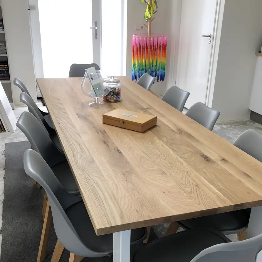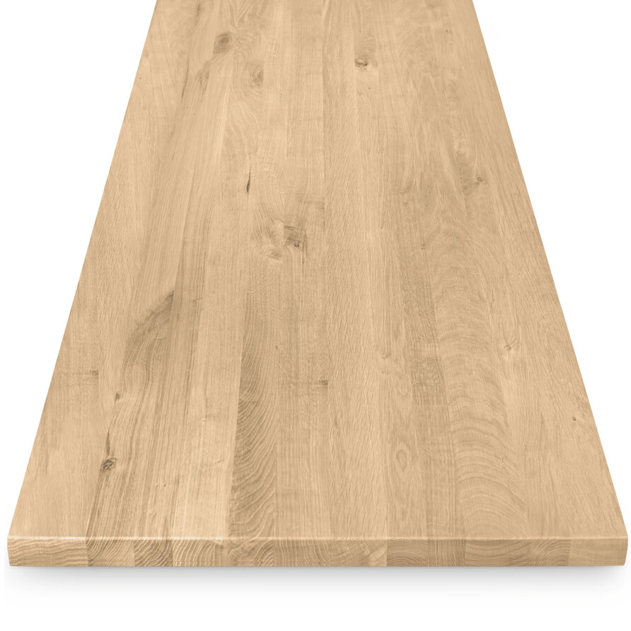 Rustikales (B/C) Eichenholz ist bekannt für seine warme und stimmungsvolle Ausstrahlung. Diese Tischplatte Eiche wird mit durchgehenden Lamellen - mit einer Breite von 4-10 cm, was einer gängigen Lamellenbreite entspricht - in der Länge geliefert. Eine Tischplatte aus Eichenholz wird standardmäßig unbehandelt, geschliffen und mit gefasten Kanten (einer 2 mm Radiusfase) ausgeliefert. Darüber hinaus bieten wir in unserem Online-Konfigurator verschiedene Zusatzoptionen an, um Ihre Tischplatte ganz nach Ihren Wünschen zu bearbeiten und zu behandeln.