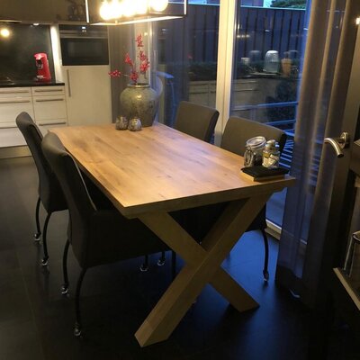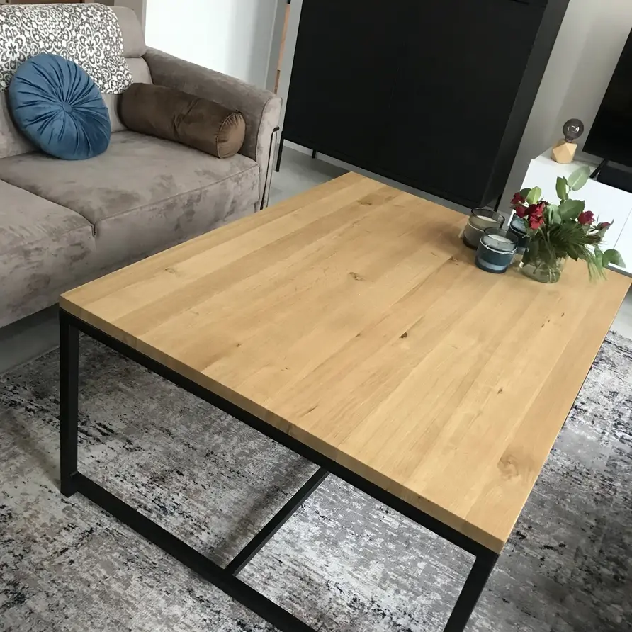 Tischplatte Eiche massiv - nach Maß - 4 cm stark (40 mm, 1-lagig) - Eichenholz rustikal (B/C) - Hochwertiges Eichen-Massivholz verleimt - künstlich getrocknet (HF 8-12%). Eine schöne Eichen-Tischplatte, 40 mm stark, die von unseren Holzarbeitern mit viel Sorgfalt und Liebe maßgefertigt wird. Rustikales Eichenholz - mit einer B-Qualität Sichtseite - enthält Äste und Risse. Dies sorgt für ein natürliches und lebendiges Aussehen.