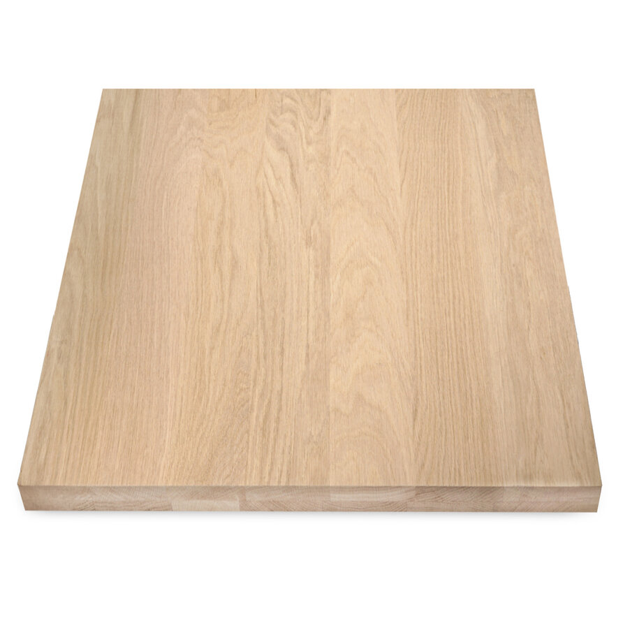 Tischplatte Eiche quadratisch - 8 cm (80 mm) dick - 2-lagig (massiv) - Eichenholz A-Qualität (A/B) - Massivholz, verleimt - HF 8-12%