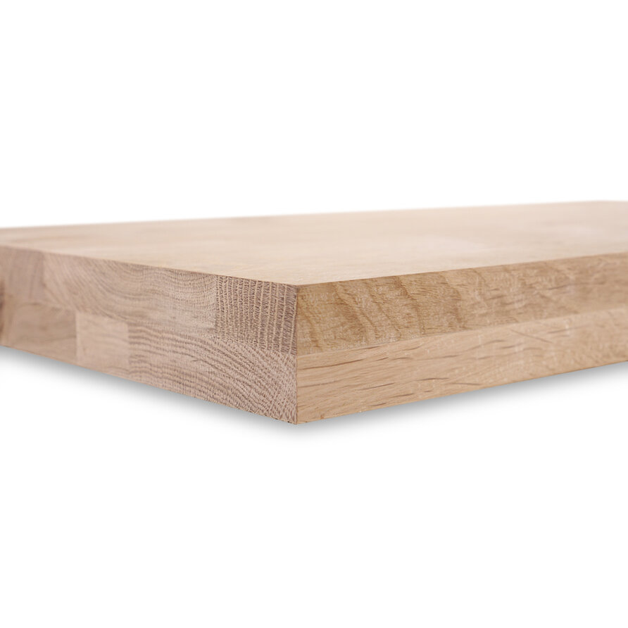 A-Qualität (A/B) Eichenholz ist bekannt für seine stimmungsvolle und luxuriöse Ausstrahlung. Diese Tischplatte Eiche wird mit durchgehenden Lamellen - mit einer Breite von 4-10 cm, was einer gängigen Lamellenbreite entspricht - in der Länge geliefert. Eine Tischplatte aus Eichenholz wird standardmäßig unbehandelt, geschliffen und mit gefasten Kanten (einer 2 mm Radiusfase) ausgeliefert. Darüber hinaus bieten wir in unserem Online-Konfigurator verschiedene Zusatzoptionen an, um Ihre Tischplatte ganz nach Ihren Wünschen zu bearbeiten und zu behandeln.